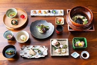 季譜の里(きふのさと)は、「花を楽しむ和みの宿」をコンセプトとしており、ミシュラン岡山2021で三つ星を獲得した温泉旅館です。料理においても、四季のうつろいを感じていただく演出を大切にしています。提供する料理は、純和風の会席料理をベースとしながら、コース内容に明確なメイン料理を設けることで、販売しやすく工夫されたスタイルとなっています。