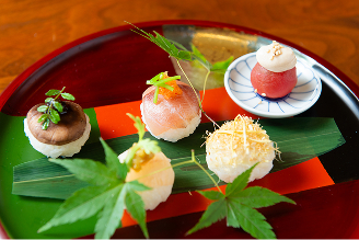 料理の基本となる五つの味覚——甘味・塩味・酸味・苦味・うま味——を大切にし、それぞれの味を一つのスタイルとして表現する「五味一風」を料理のコンセプトに掲げています。京都の一流料亭で修業を積んだ料理人が、地元・瀬戸内の豊かな食材を主役に据え、会席料理と寿司コースを組み合わせた独自のコースを創り上げています。